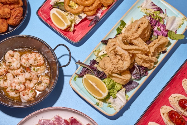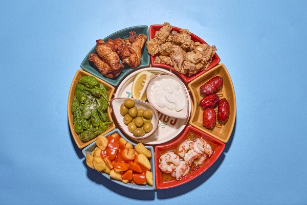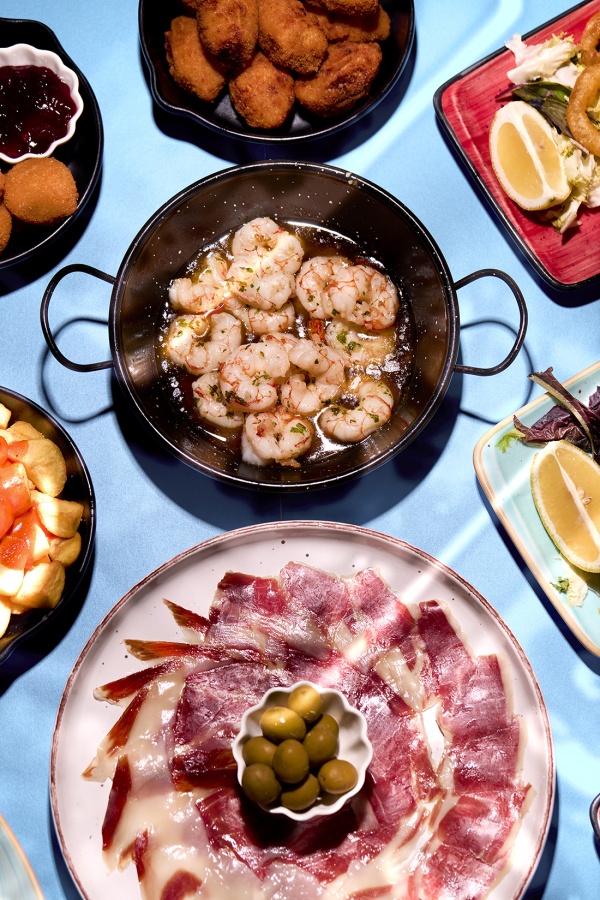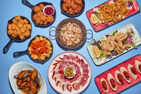 Un grid visual con fotos dinámicas de tapas, bebidas, el local y gente disfrutando.